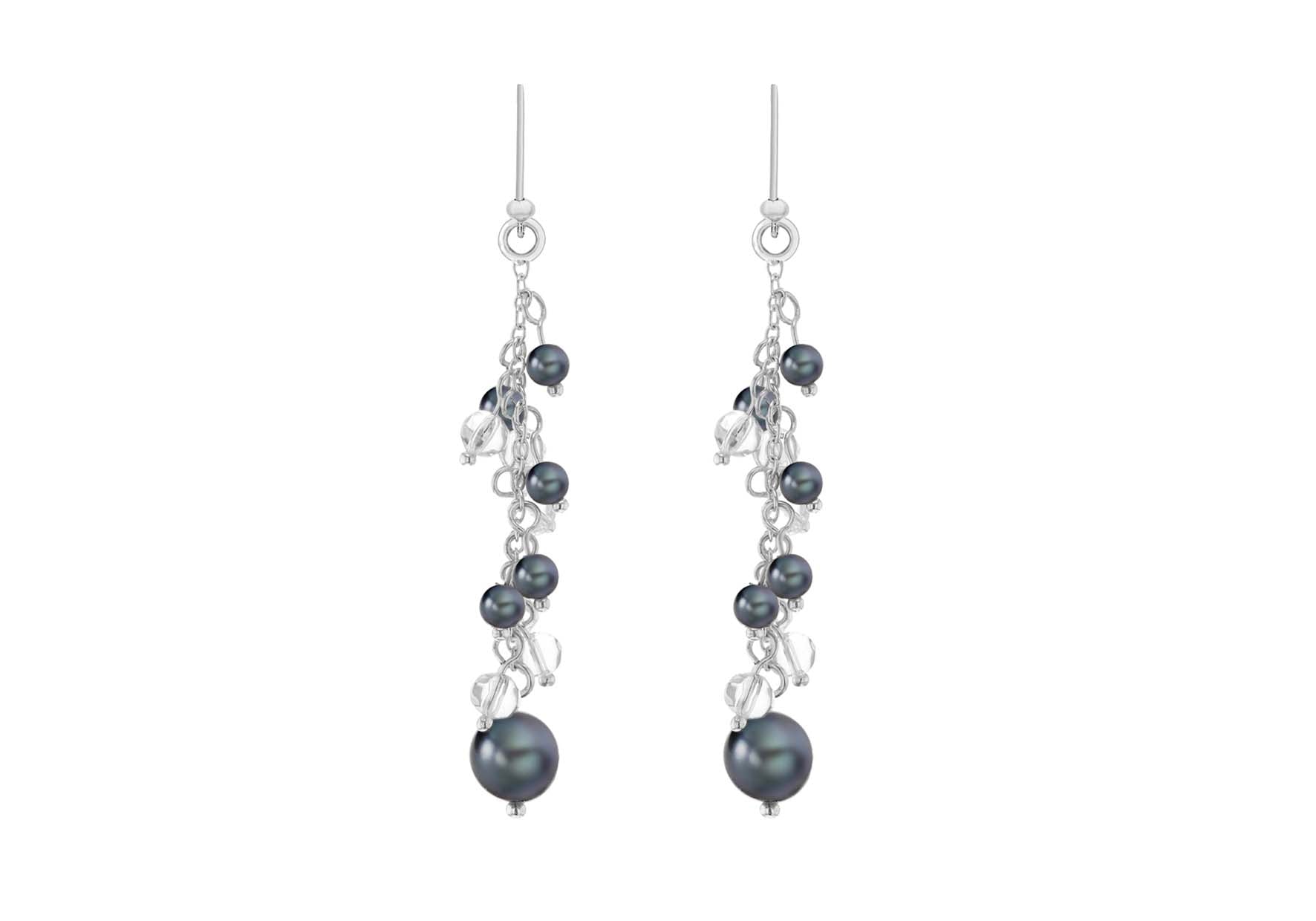 Freshwater Pearl Grey and Crystal Drop Earrings Silver